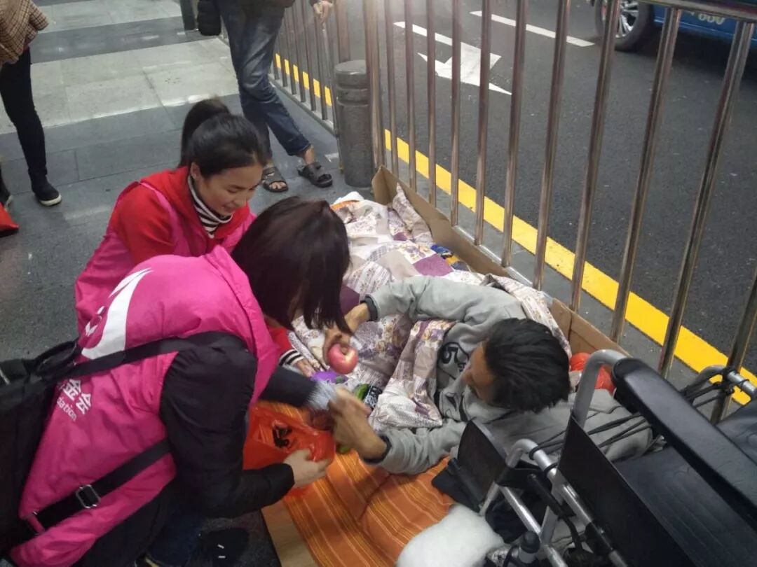 自团队成立日起就把关爱街头流浪人活动作为“雷打不动,逢二必做”的一项“固定工作”,一碗热面、一个苹果、一条围巾、一句关怀、一个拥抱......无论刮风下雨,每周二总能在街头巷尾、天桥车站看到穿着粉红马甲的人群,那便是爱心团的志愿者,把关爱送到这些无家可归、四处流浪的人员身边的一群乐于奉献的人儿。